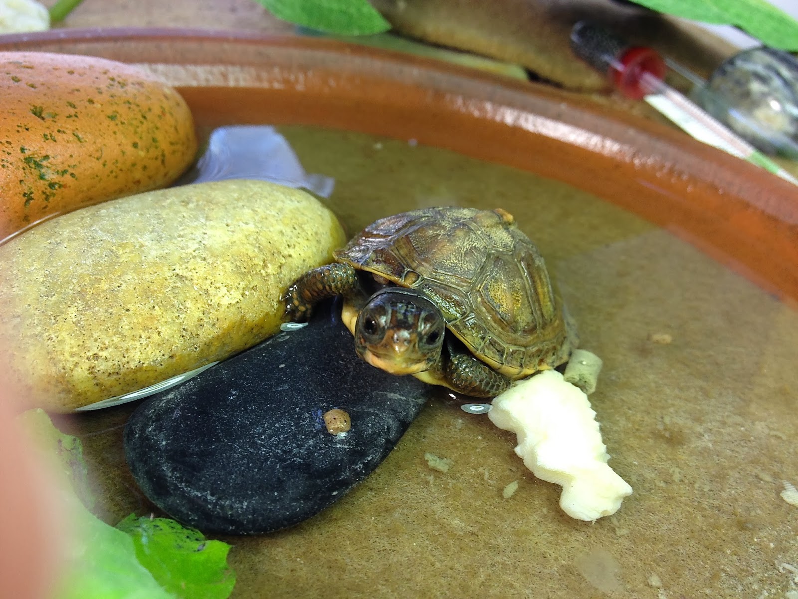 I think Robert is a girl so I need a new name. I am looking for the Nanticoke name of the turtle who held up Turtle Island. She has had ferns added to her habitat and is happy to have so many hiding places. She is now 4 months old.