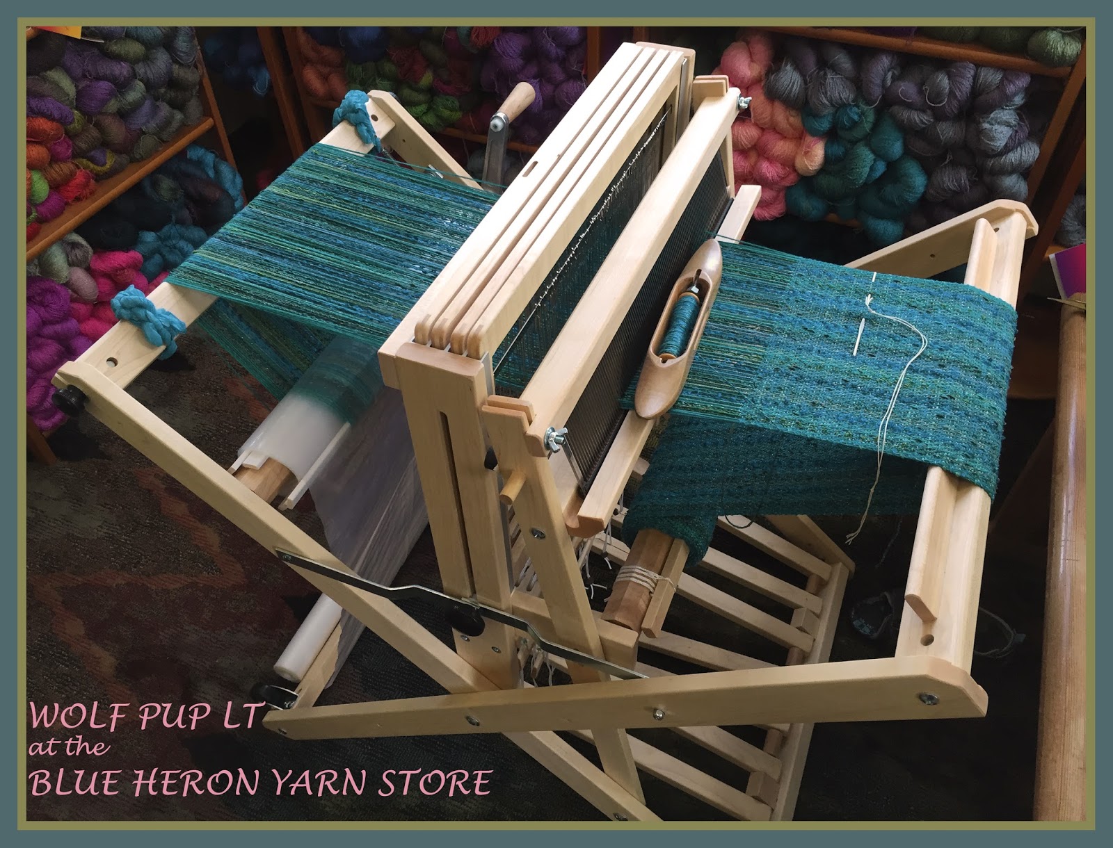 We are weaving at Blue Heron on our new Schacht Wolf Pup Lt. If you would like one of your very own you can order from us and take advantage of our introductory offer.