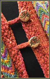 "Winter Forest" jacket is my latest piece. I really had fun with the colors. Nancy Stone's "Coral" pendant goes so well with it.