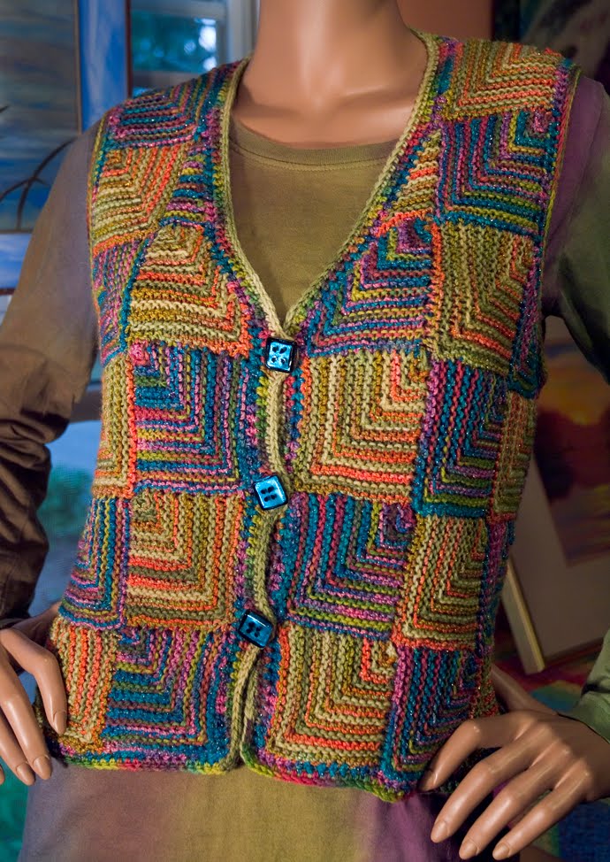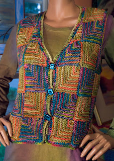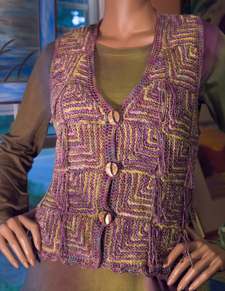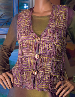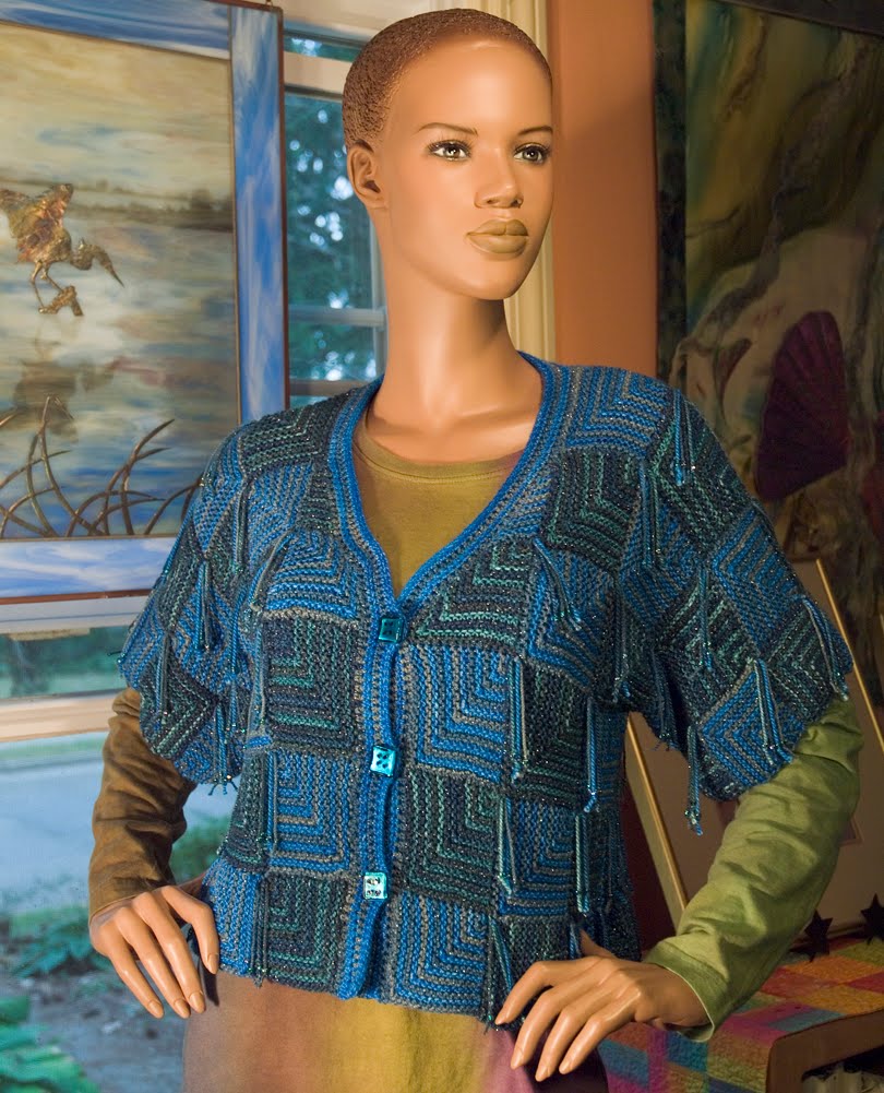 I used the Ojo de Dios vest pattern from Patricia Werners' wonderful book "Dazzling Knits" to make these three new pieces. I added sleeves for the jacket. I include all of my changes and additions to the pattern in the kit but her pattern is not included.