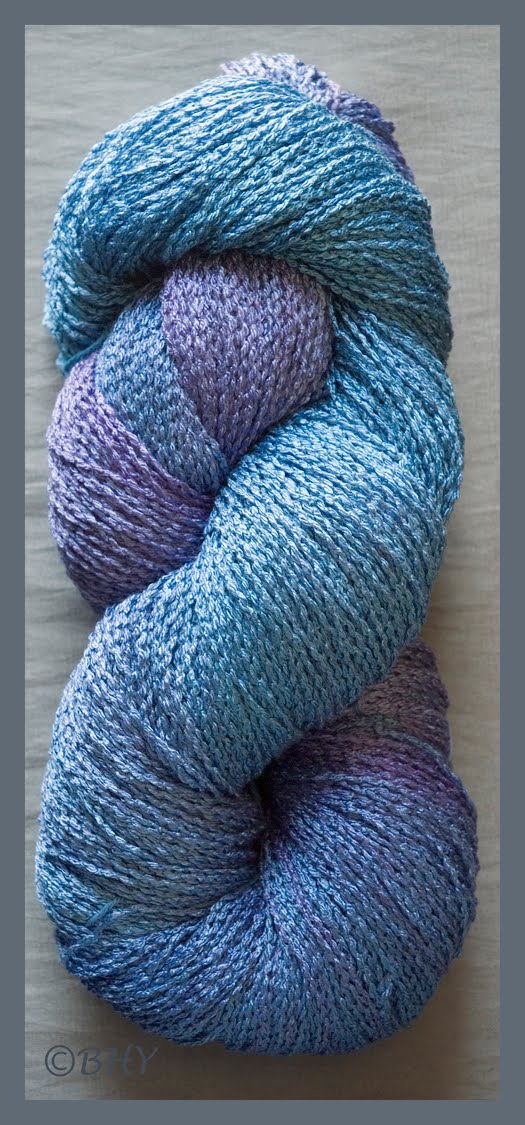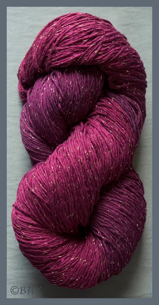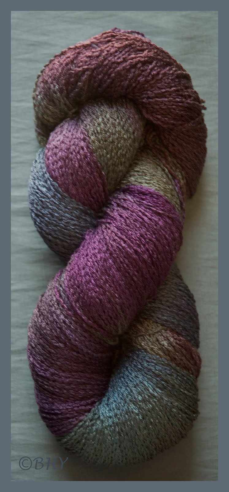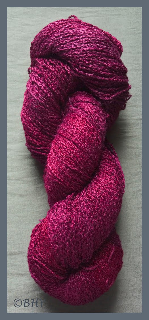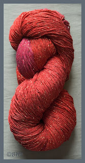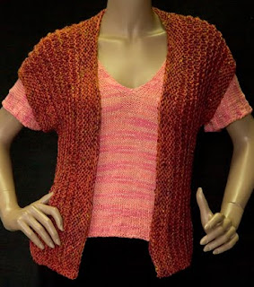 New! Easy to knit vest in Carnelian with subtle rainbow accents. Worked on size 11 needles this is quick to make.