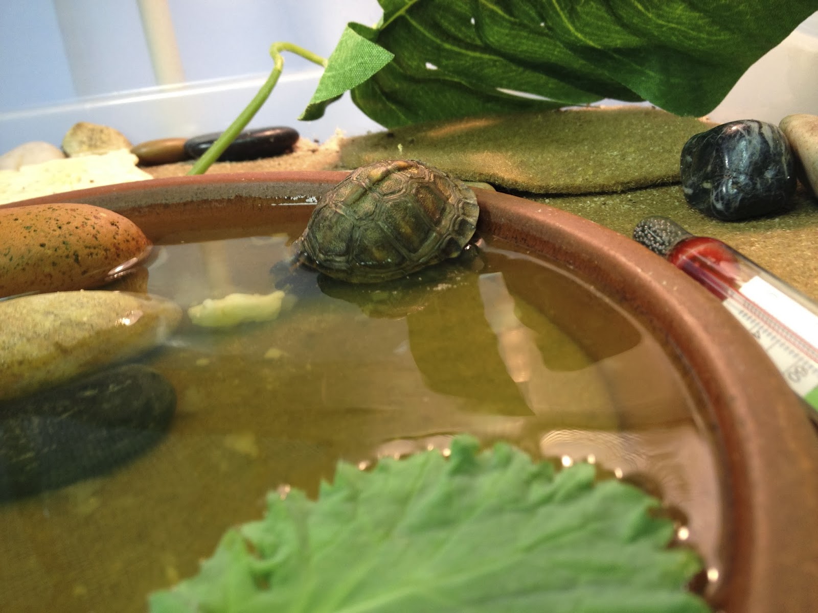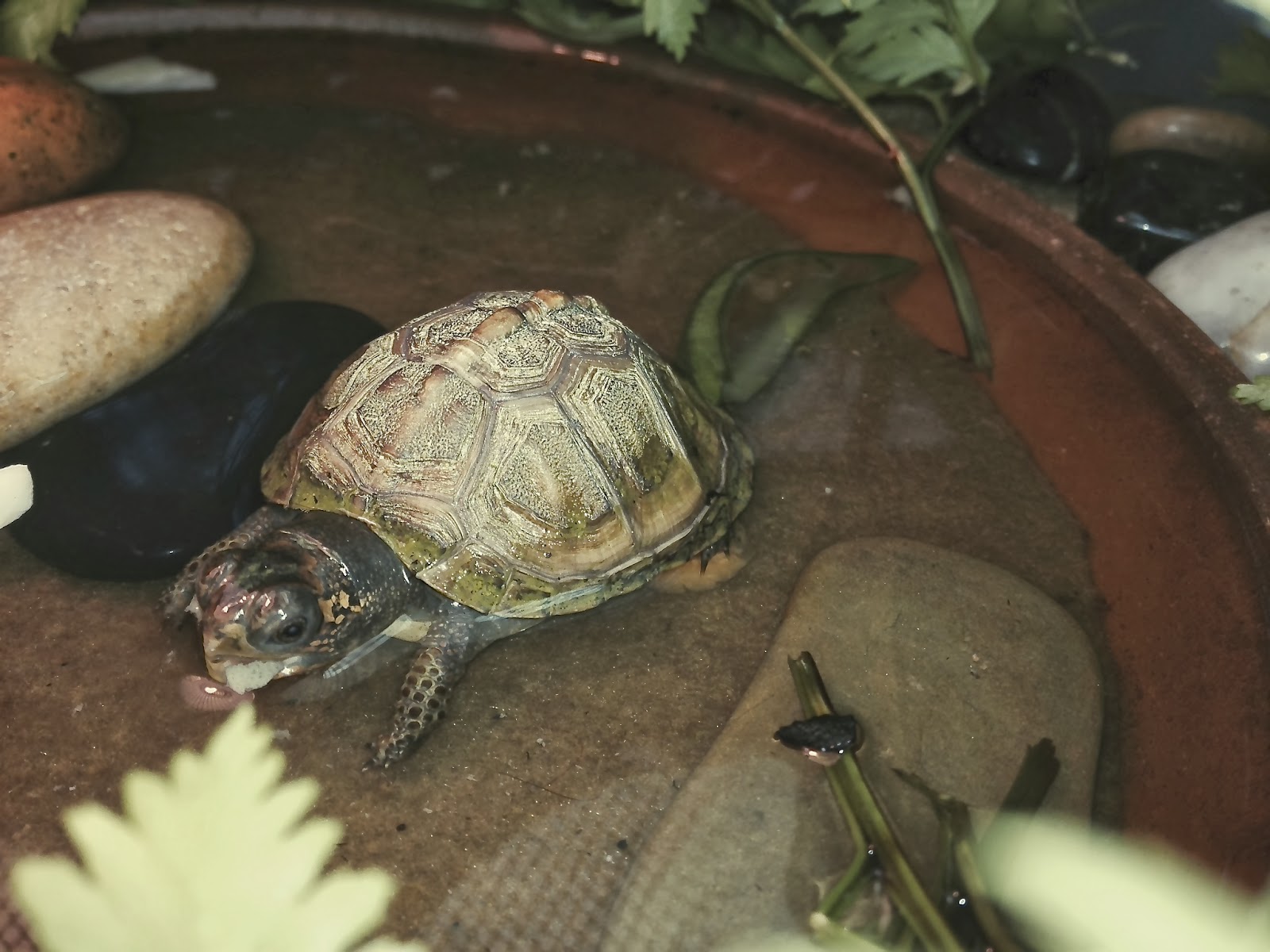 I think Robert is a girl so I need a new name. I am looking for the Nanticoke name of the turtle who held up Turtle Island. She has had ferns added to her habitat and is happy to have so many hiding places. She is now 4 months old.