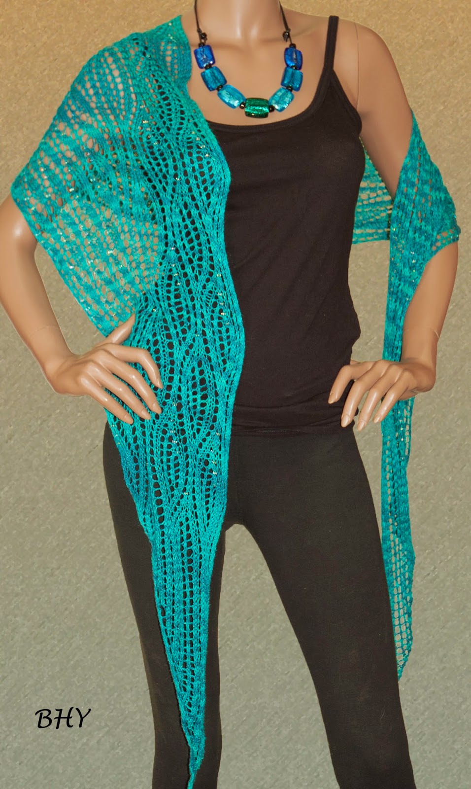 The perfect accessory for summer anytime. Cool, bright and green. Knit in Blue Heron Rayon Metallic in the color Lime.