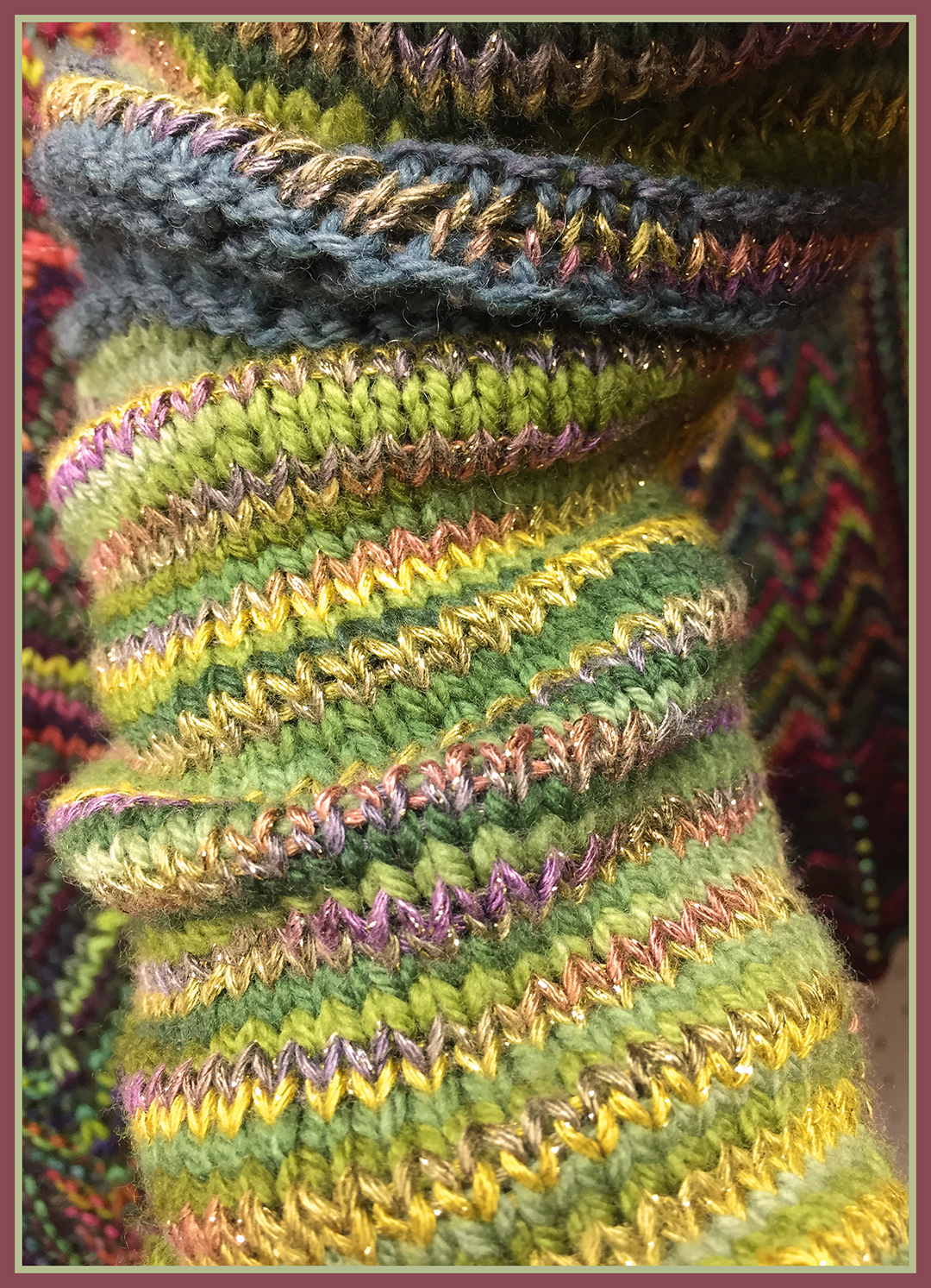 The colors of fall are knit into this "Autumn Walk Jacket".