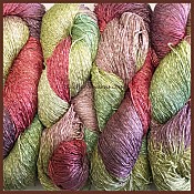 This is a very soft yarn and the two fibers are twisted together, not blended. This gives the yarn a matte/ shiny look and the the fibers take the dye differently giving a broader range of color. Made in USA1000y/8oz skein needle size 3/4/5 25%cott/75%ray